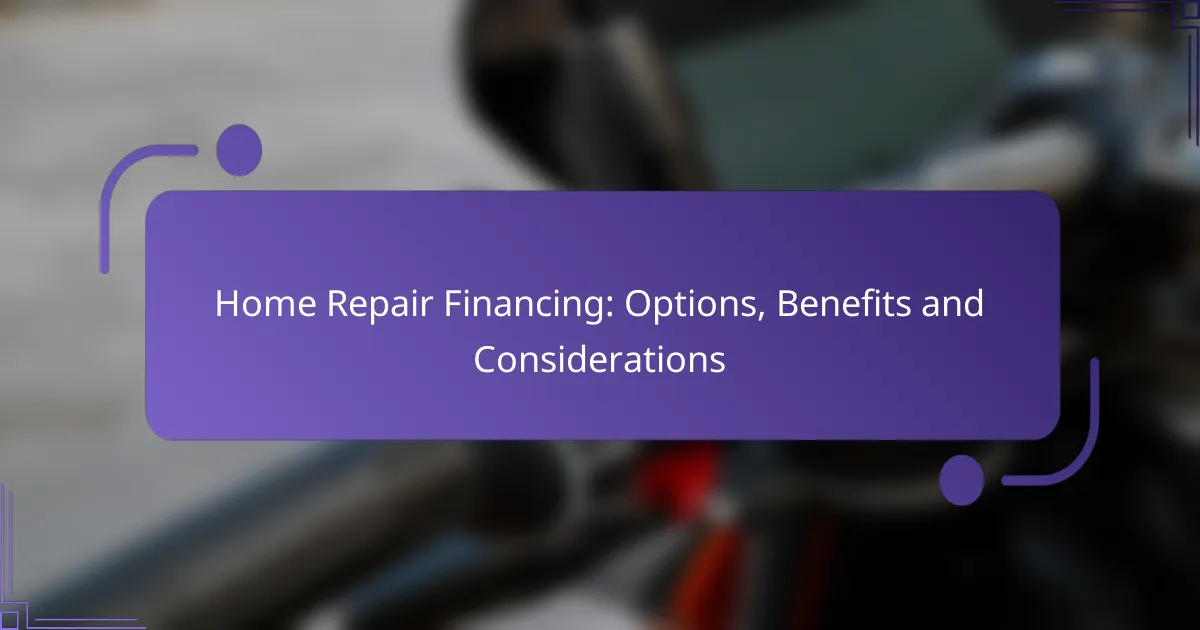 Home repair financing provides various options such as personal loans, home equity loans, and government grants, each with distinct benefits and considerations. These financing methods can offer immediate access to funds and flexible repayment plans, making it easier for homeowners to address urgent repairs without financial strain. Before making a decision, it’s essential to assess your financial situation and the potential return on investment to select the most suitable option for your needs.