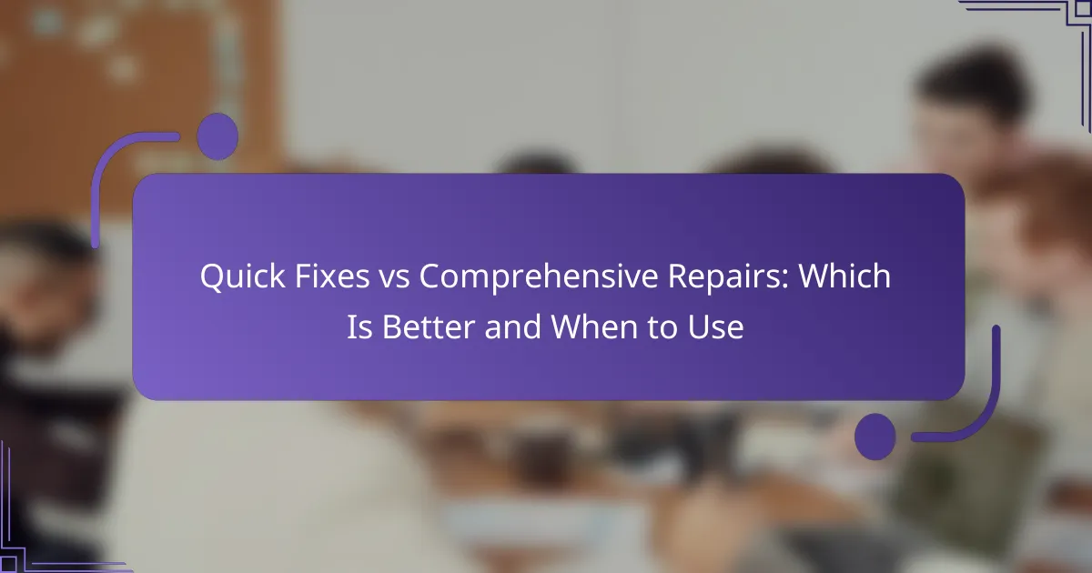 Time constraints can heavily influence your choice between quick fixes and comprehensive repairs. Quick fixes are ideal for urgent situations where immediate action is needed, often taking just a few minutes to a few hours. In contrast, comprehensive repairs may require more time, potentially spanning several days or even weeks, depending on the complexity of the issue.
