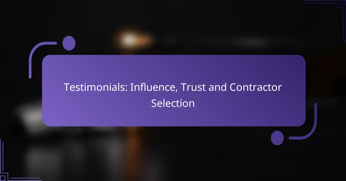 Testimonials play a crucial role in contractor selection by offering social proof and insights into past client experiences. They enable potential clients to assess a contractor’s reliability and quality, ultimately boosting confidence in their choices. By effectively utilizing various forms of testimonials, contractors can enhance their credibility and influence the decision-making process of prospective clients.